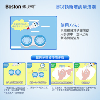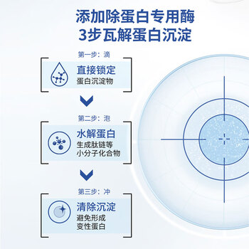 安全使用说明 不要直接入眼。如果误用本清洁剂可能会产生刺激。如果没有彻底冲洗掉去蛋白清洁剂就截上镜片,则可能发生眼红或者刺激症状。如果进入眼内,立即摘下镜片并用冷的新鲜水冲洗眼睛直到所有去蛋白清洁剂彻庭从腿内去掉。如果问题仍存在,请与您的眼保健专家联系。
