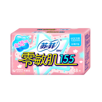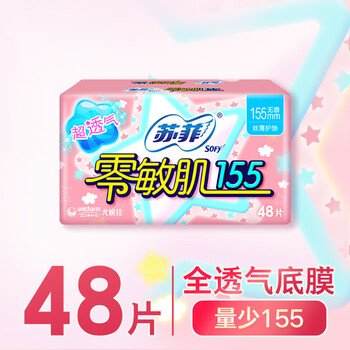 苏菲零敏肌超薄无香型护垫迷你日用卫生巾155mm48片 京东自营官方旗舰