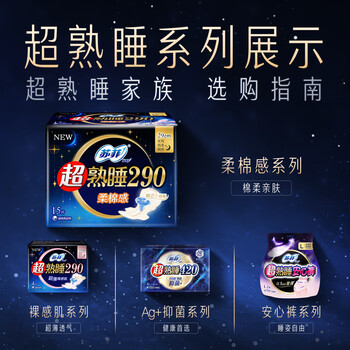 苏菲超熟睡柔棉感夜用卫生巾29cm15片量多防漏干爽姨妈巾自营官方旗舰