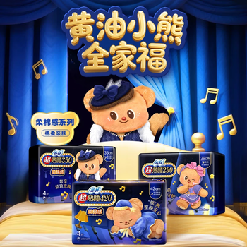 苏菲【黄油小熊】超熟睡柔棉感超长量多夜用卫生巾42cm8片姨妈巾自营