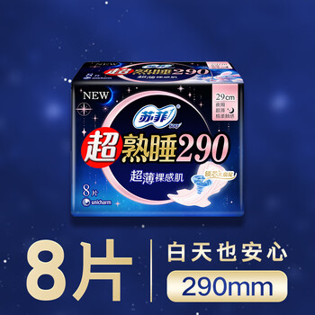 苏菲超熟睡超薄裸感肌夜用卫生巾29cm8片量多无感防漏姨妈巾自营官方