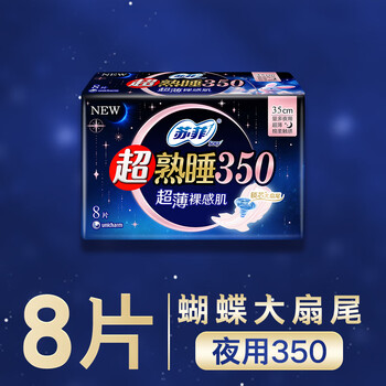 苏菲超熟睡超薄裸感肌夜用卫生巾35cm8片超长扇尾量多姨妈巾自营官方