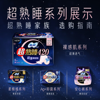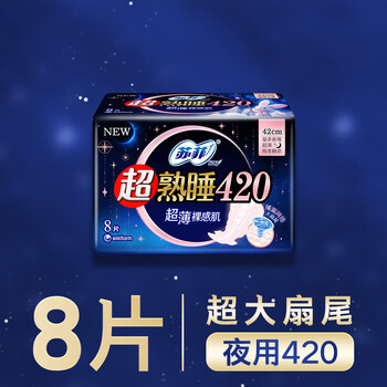 苏菲超熟睡超薄裸感肌超长量多夜用卫生巾42cm8片加大姨妈巾自营官方