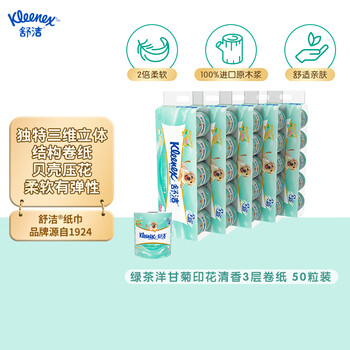 舒洁(Kleenex)舒洁卷纸卫生纸绿茶洋甘菊清香印花有芯卷纸3层250节*50厕纸