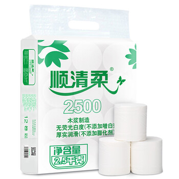 顺清柔无芯卷纸超洁系列5层208g*12卷 冲厕易溶解卫生纸厕纸 2.5kg/提