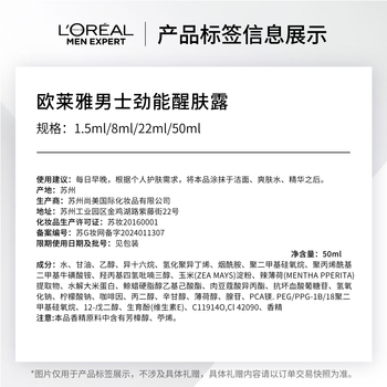 欧莱雅男士劲能醒肤露50ml(版本随机发,具体以实际收到为准)
