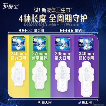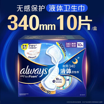 护舒宝液体卫生巾超长夜用340mm10片姨妈巾无感保护京东自营官方旗舰