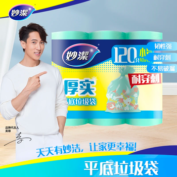 妙洁平口垃圾袋青色40*45cm120只单面0.8丝点断式小号新老包装随机发