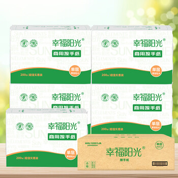 幸福阳光 抽纸 商用家用擦手纸 单层折叠式200抽*20包 酒店餐厅卫生间纸巾(整箱销售)