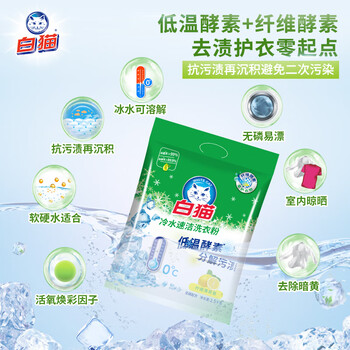 白猫 冷水速洁洗衣粉5斤 低温酵素分解污渍柠檬薄荷香2500g机洗袋装