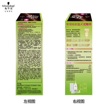 每盒含:护发染发霜x1支,显色敷用乳x1瓶,草本固色修护洗发乳x1瓶,专用染发手套x1副,专用染发耳套x1副,专业染发披肩x1个,染发操作指南x1份