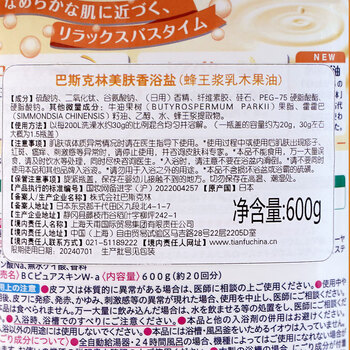 巴斯克林多功能身体磨砂膏美肤香浴盐(蜂王浆乳木果油)600g日本进口