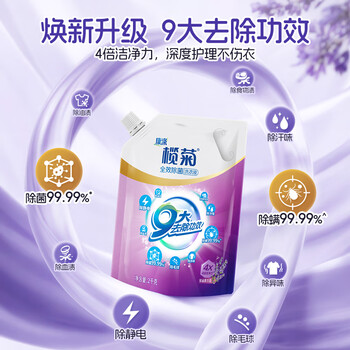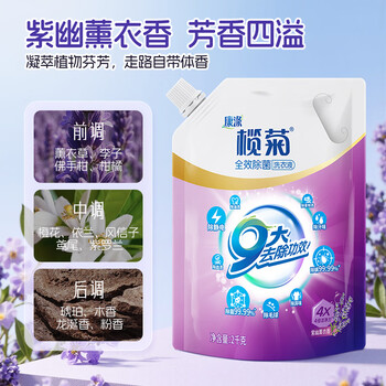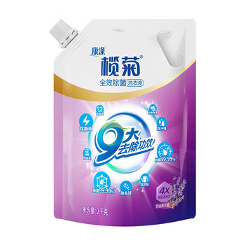 榄菊康涤全效洗护洗衣液2kg袋装补充装薰衣草香除菌除螨去污去渍