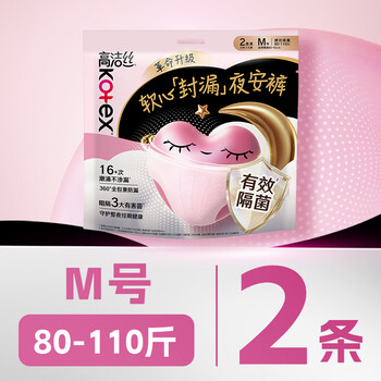 高洁丝【有效隔菌】软心夜安裤M号2条80-110斤裤型卫生巾安睡裤京东自营