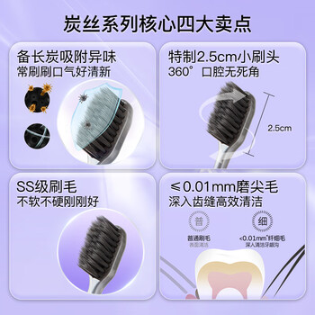舒客备长炭软毛牙刷8支去异味清新口气成人牙刷小刷头家庭装新老随机
