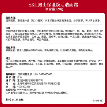 产品(注册/备案)名称 SK-II 男士焕活保湿洁面霜