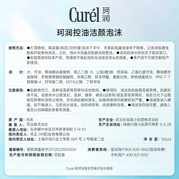 珂润(Curel)控油保湿洁面泡沫150ml 氨基酸洗面奶温和清洁敏感肌男女京东自营