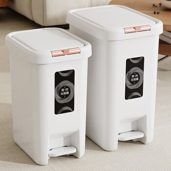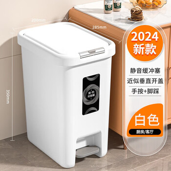 雅高按压+脚踩翻盖垃圾桶14L卫生间厨房防臭客厅卧室带盖
