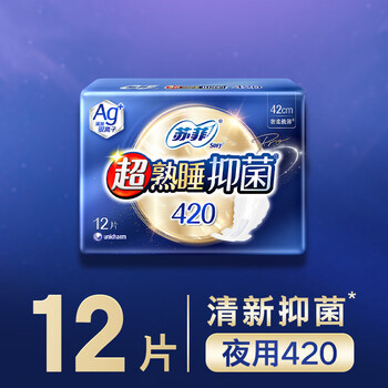 苏菲超熟睡清新抑菌Ag+银离子柔棉夜用卫生巾420mm 12片
