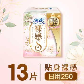 苏菲【婴儿级标准】裸感S极上日用卫生巾25cm13片透气保护姨妈巾自营