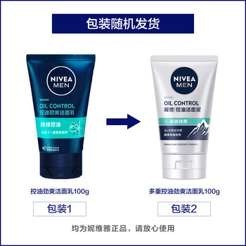 妮维雅(NIVEA)男士【长效清爽】控油劲爽洁面100g洗面奶深层清洁收毛孔护肤品