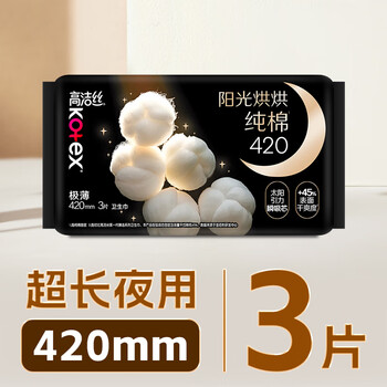 高洁丝(kotex)臻选系列极薄纯棉卫生巾夜用420mm 3片