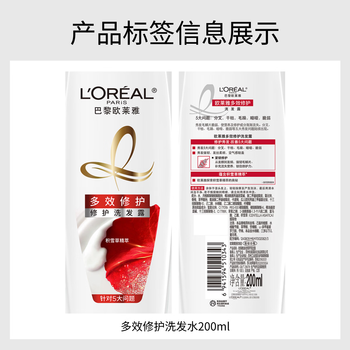 欧莱雅多效修护洗发水防断发洗发露200ml(新老包装随机发货)