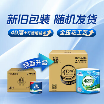 洁云有芯卷纸4D溶4层120克*27卷卫生纸卷筒纸厕纸速溶纸可冲马桶