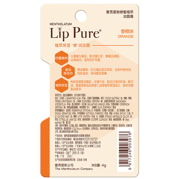 曼秀雷敦蜂蜜植萃润唇膏香橙味4g*1,新老包装随机发货