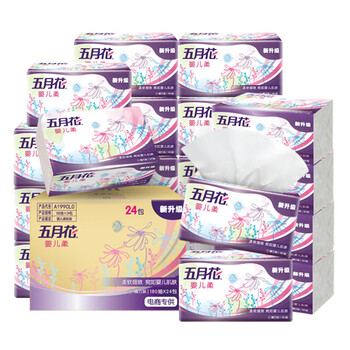 五月花(May Flower)抽纸 2层180抽*24包S码软抽 柔软亲肤面巾纸 整箱装