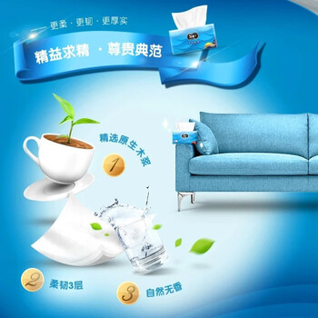 洁柔抽纸 柔厚3层130抽*3包 蓝色丝柔尊贵 面巾纸 100%原生木浆
