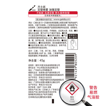 产品(注册/备案)名称 杰士派定型喷雾 加强定型