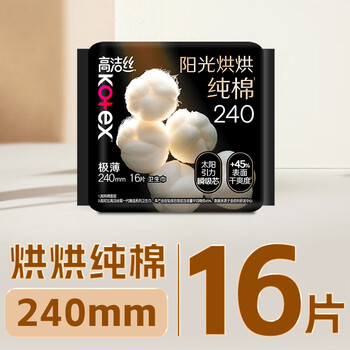 高洁丝(Kotex)臻选系列极薄纯棉卫生巾日用240mm16片装× 1
