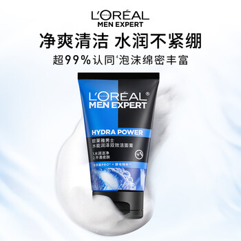 欧莱雅男士专用水能润泽洁面膏100ml洗面奶控油补水保湿护肤品