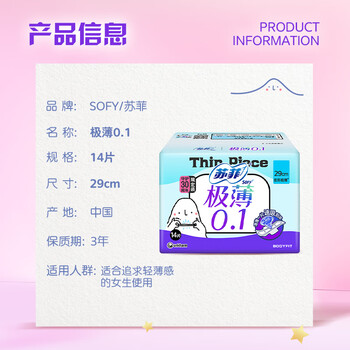 苏菲极薄0.1量大日夜用卫生巾290mm14片 无感加长姨妈巾自营官方旗舰