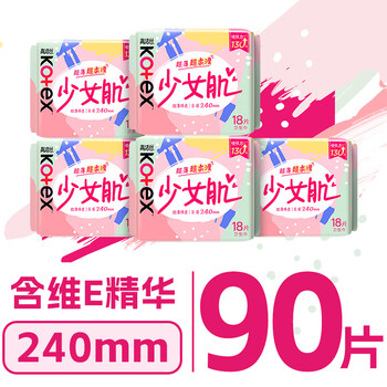高洁丝【柔滑呵护】少女肌卫生巾240mm5包*18片日用姨妈巾京东自营旗舰
