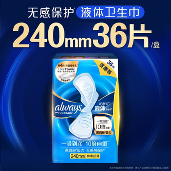 护舒宝[NO.1卫生巾]液体卫生巾日用240mm36片姨妈巾无感保护京东自营