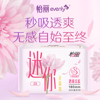 怡丽迷你卫生巾超薄干爽透气直条无护翼日用护垫180mm24片京东自营
