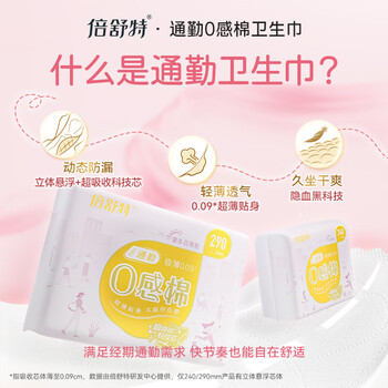 倍舒特0感棉 超薄透气棉柔日用卫生巾240mm40片 京东自营姨妈巾随心囤