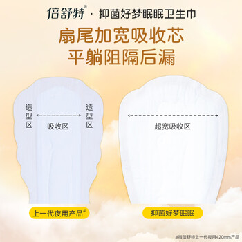 倍舒特自净好梦眠眠 抑菌大扇尾夜用卫生巾420mm16片 京东自营姨妈巾