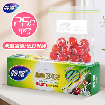 妙洁密封袋中号25只 加厚食品级保鲜自封袋冰箱厨房