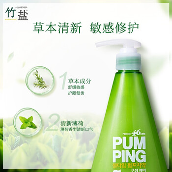 竹盐LG派缤按压式牙膏285g*1瓶萌绿清新清爽口感减轻牙渍清洁口腔