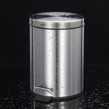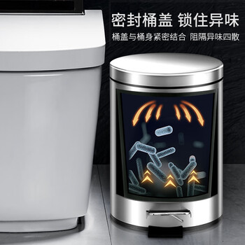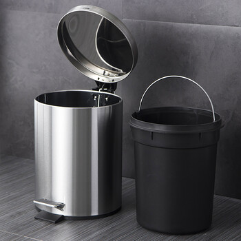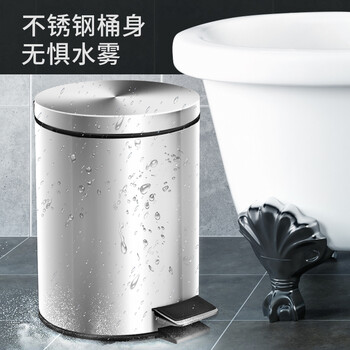 欧润哲垃圾桶脚踏带盖8L圆形砂光不锈钢客厅卧室厨房卫生间家用内外双桶