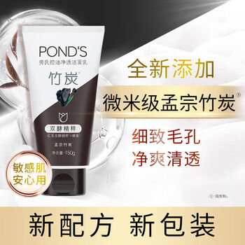 旁氏(POND'S)竹炭控油净透洁面乳150g 洗面奶男女去角质38节礼物