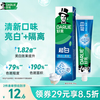 好来(DARLIE)【白鹿推荐】超白牙膏微分子亮白去黄隔离牙渍190g新旧随机