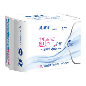 ABCKMS轻透薄健康配方极薄无感护垫卫生巾京东自营163mm*22片