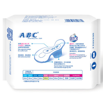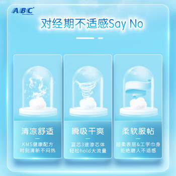 ABC夜用纤薄棉柔排湿表层卫生巾8片(含KMS健康配方)*1