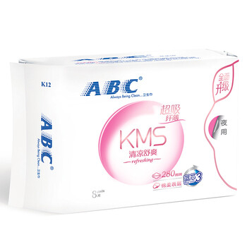 ABCKMS纤薄健康配方超薄透气夜用卫生巾京东自营280mm*8片