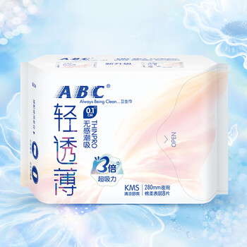 ABCKMS轻透薄健康配方超薄无感夜用卫生巾京东自营280mm*8片