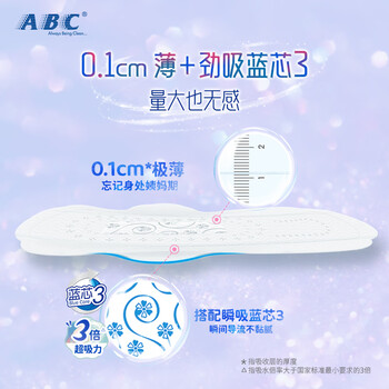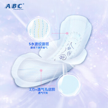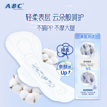 ABC夜用超极薄棉柔排湿表层卫生巾8片(含KMS健康配方)*1